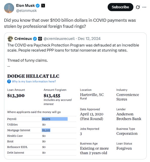 “Did you know that over $100 billion dollars in COVID payments was stolen by professional foreign fraud rings?” Elon Musk posted on X.