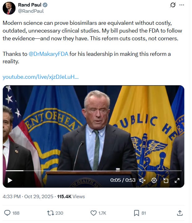 Paul’s push for modernization and medication affordability expedites the FDA biosimilar process for approval without jeopardizing consumer safety.