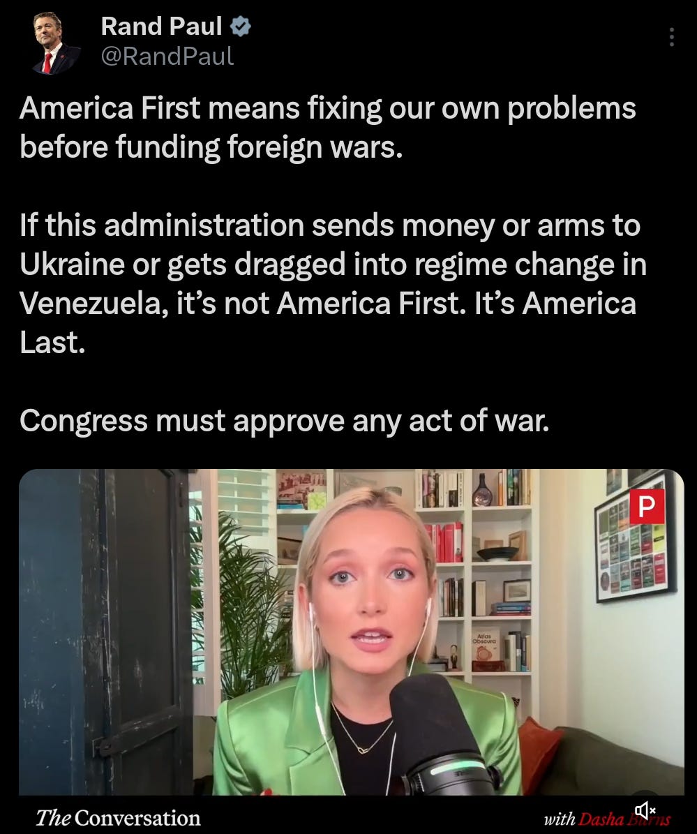 In his recent interview, Sen. Rand Paul didn’t mince words. He stated that if the administration continues to send arms or large sums of money to Ukraine, or becomes more involved in Venezuelan affairs, the backlash within the MAGA base will be far worse than the controversy surrounding the Epstein files.