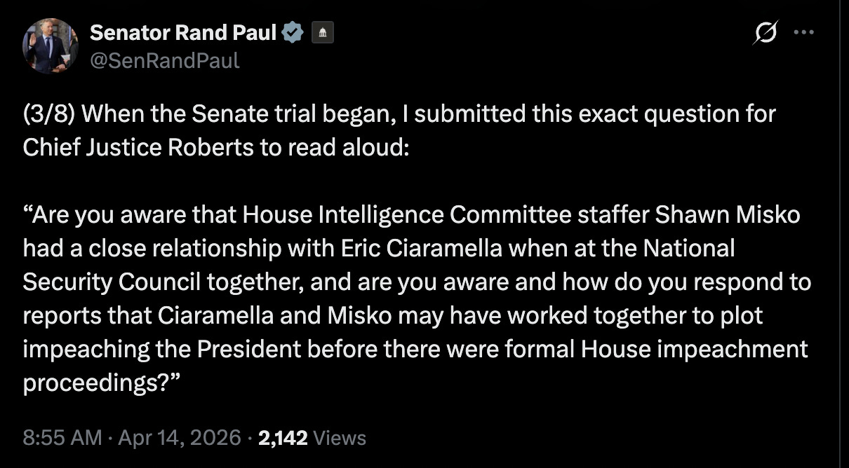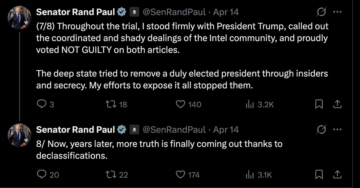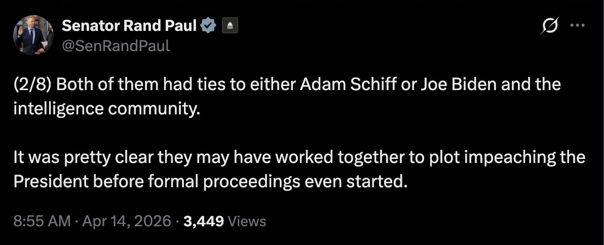 Sen. Paul sees the report as vindication of his challenge to Democrats and their impeachment sham trial six years ago.