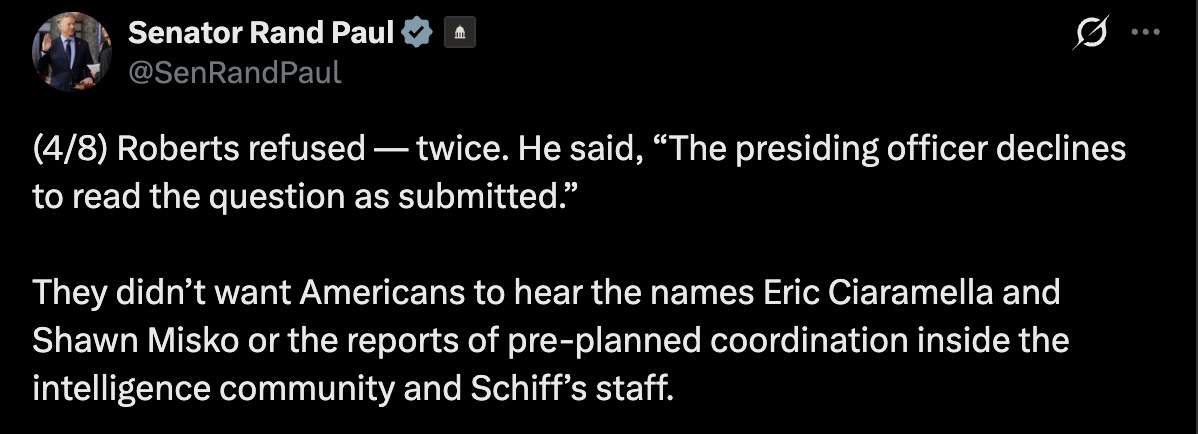 Sen. Paul did create “a pressure campaign to release the whistleblowers’ names and have them testify as material witnesses.”