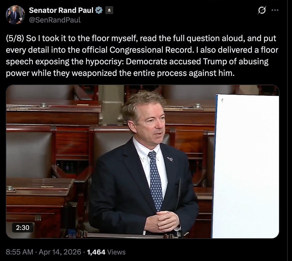 Sen. Rand Paul said on the Senate floor that Democrats - who were accusing Trump of abusing the system - were actually the ones abusing the system: