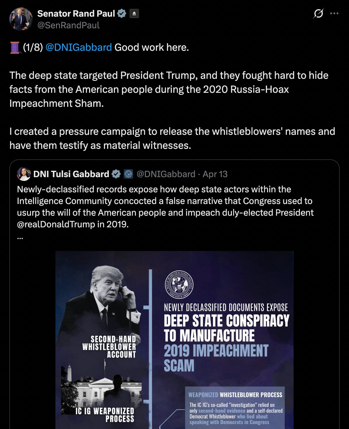 Paul spelled out what Gabbard’s report found. He said of the whistleblowers: