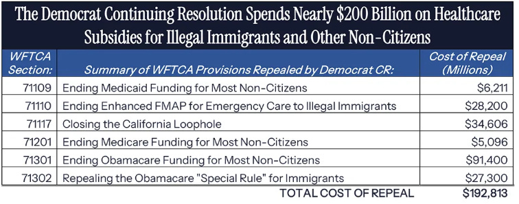 FACT: Democrats’ proposal would result in nearly $200 billion spent on healthcare for illegal immigrants and other non-citizens over the next decade — enough to fund the entire Children’s Health Insurance Program.