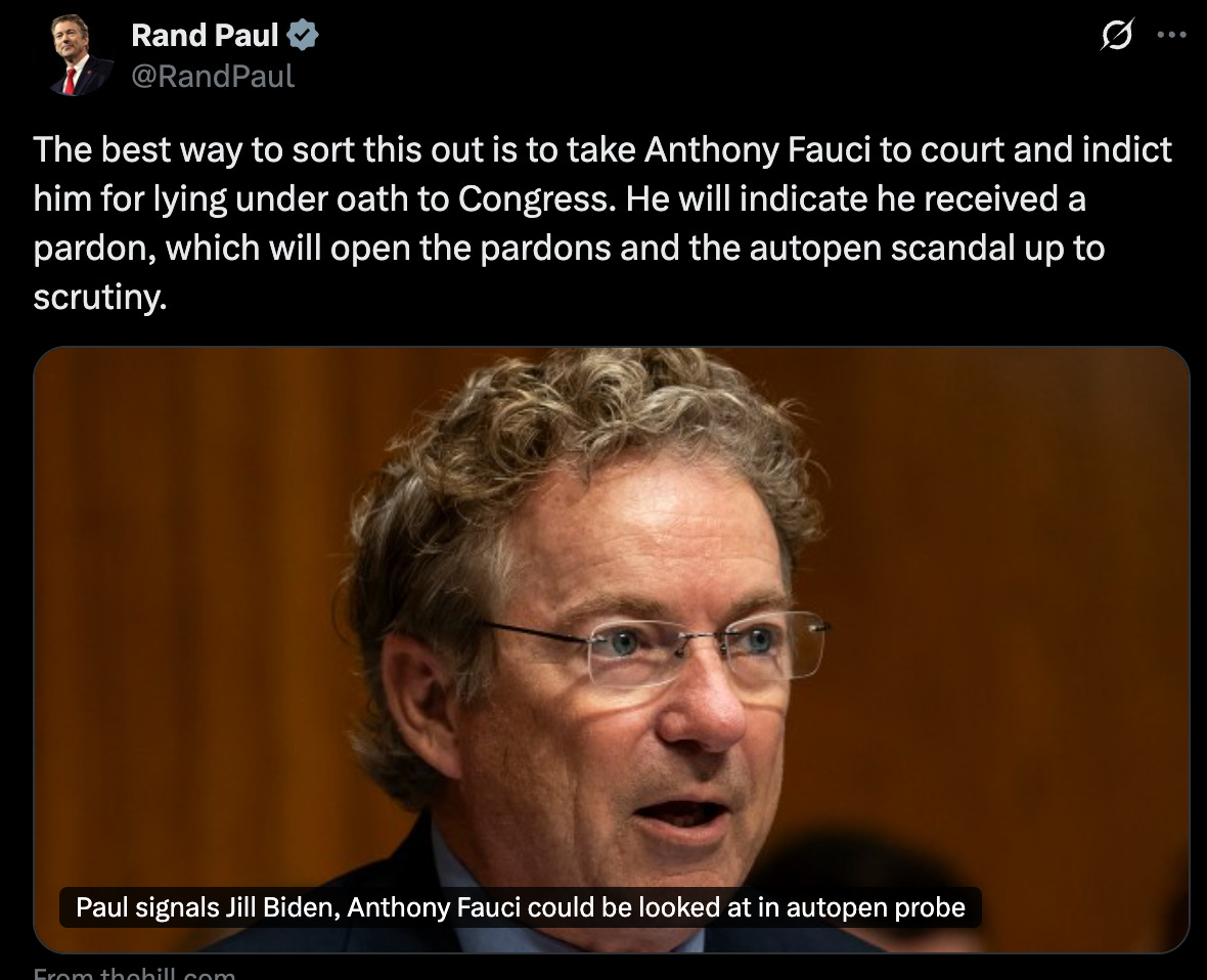 Senator Rand Paul, has called for an investigations into Fauci’s role, particularly regarding the origins of the virus and alleged misinformation about its spread. Now he wants to find out who truly signed his so-called pardon.