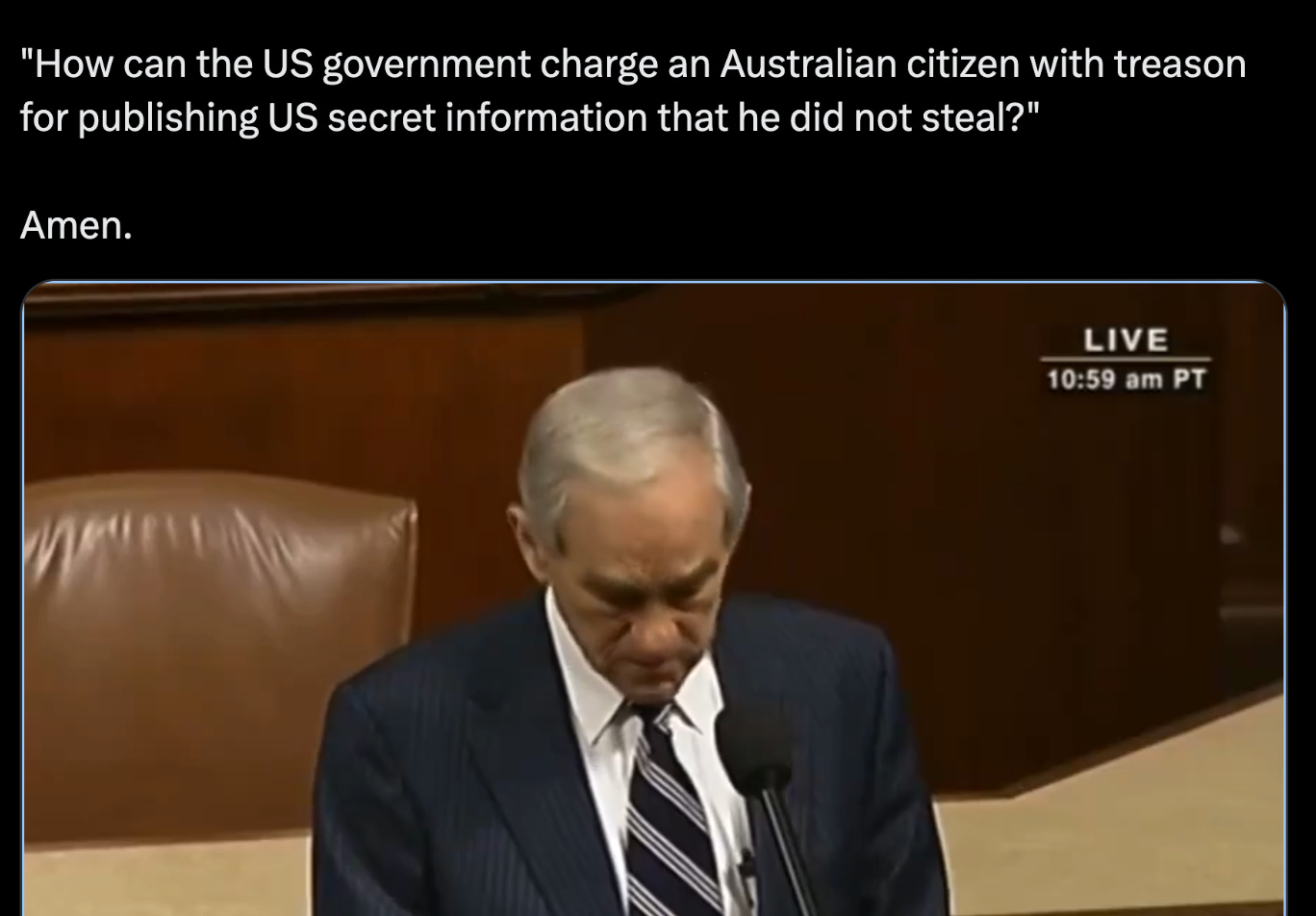 Australian-born Julian Assange, founder of WikiLeaks, has walked from a UK prison after being detained for five years. His freedom comes at a price, though. He’s entering a plea bargain with the U.S. government for “crimes” he didn’t commit. Representative Ron Paul stated in 2010 that this is a case of killing the messenger. How can an Australian citizen be charged for exposing US Secret Service information he didn’t steal? It was given to him by US whistleblowers. Assange didn’t commit espionage as he is charged. He exposed the Deep State.