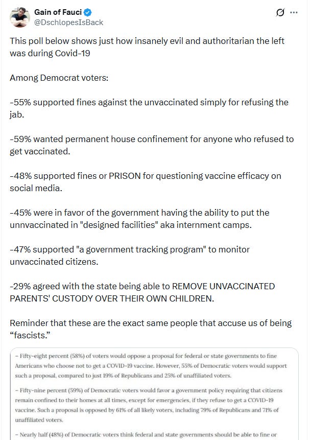 This poll below shows just how insanely evil and authoritarian the left was during Covid-19.
