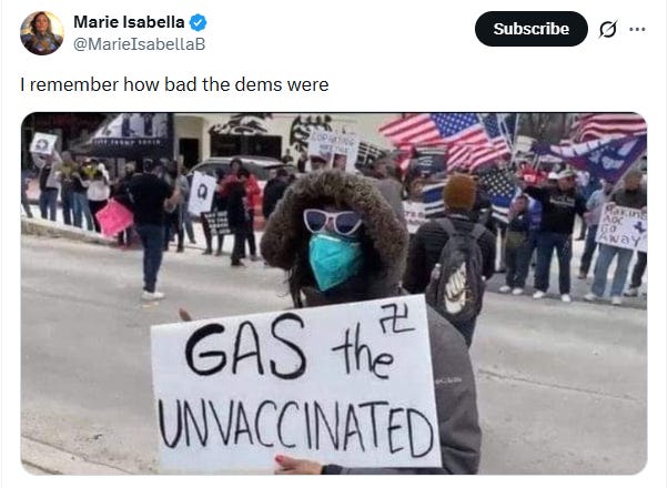 “Gas the unvaccinated,” complete with a Nazi Swastika, says it all.
