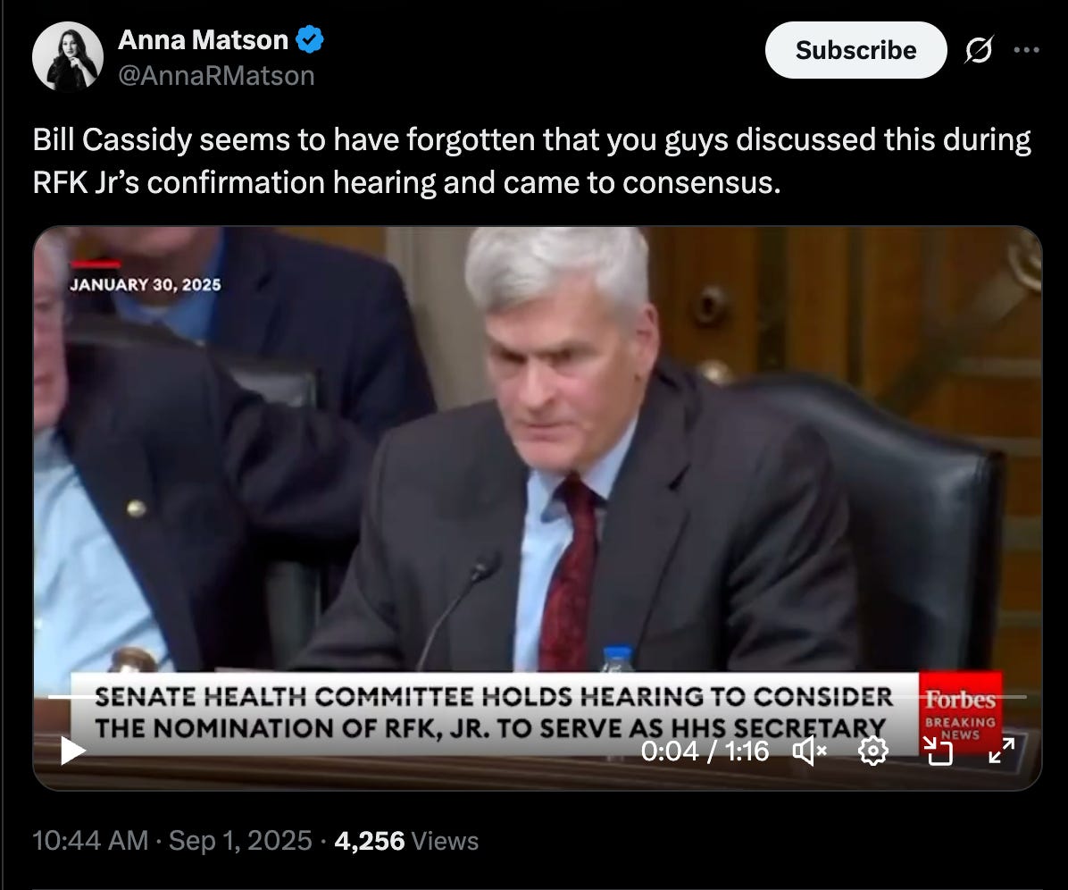Strangely enough, Cassidy seemed to have reached a consensus with Paul on this front during RFK Jr’s confirmation hearing back in February.