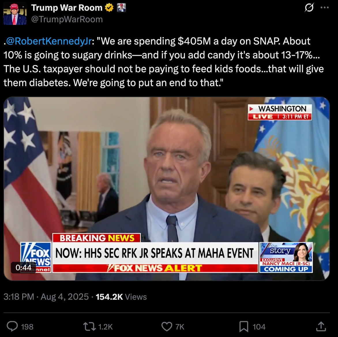 RFK Jr.: Taxpayers Should Not Be Paying for ‘Foods That Are the Gift of Diabetes’