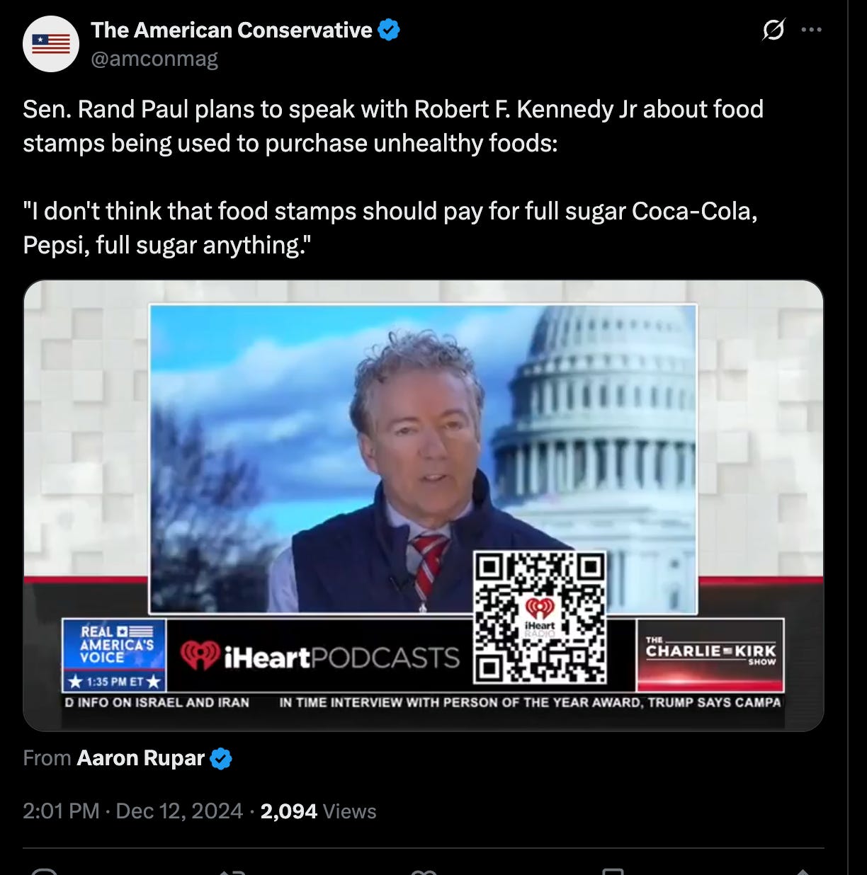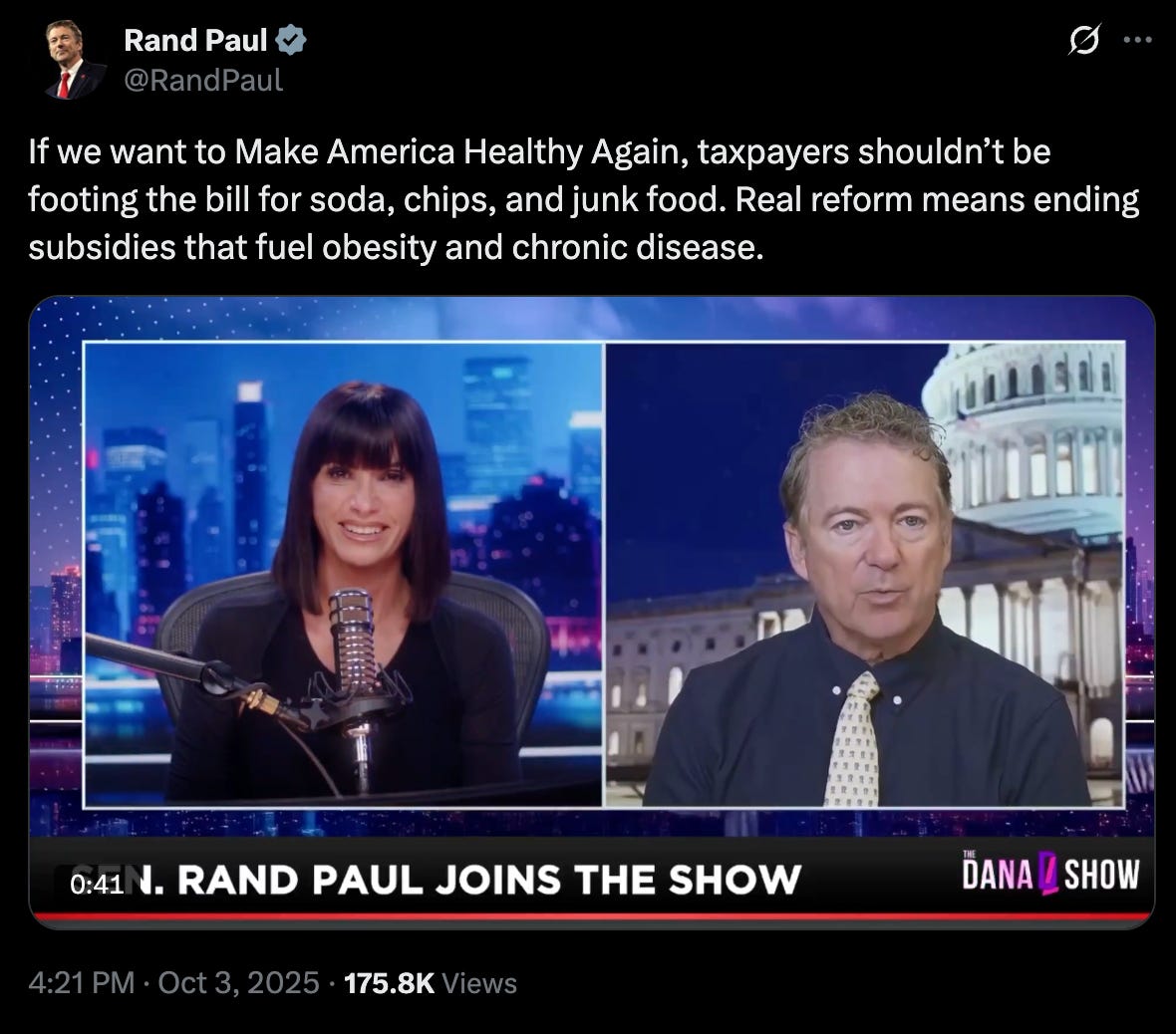 Rand Paul doesn’t think taxpayers should be paying for junk food in an America that’s becoming less healthy and more obese.