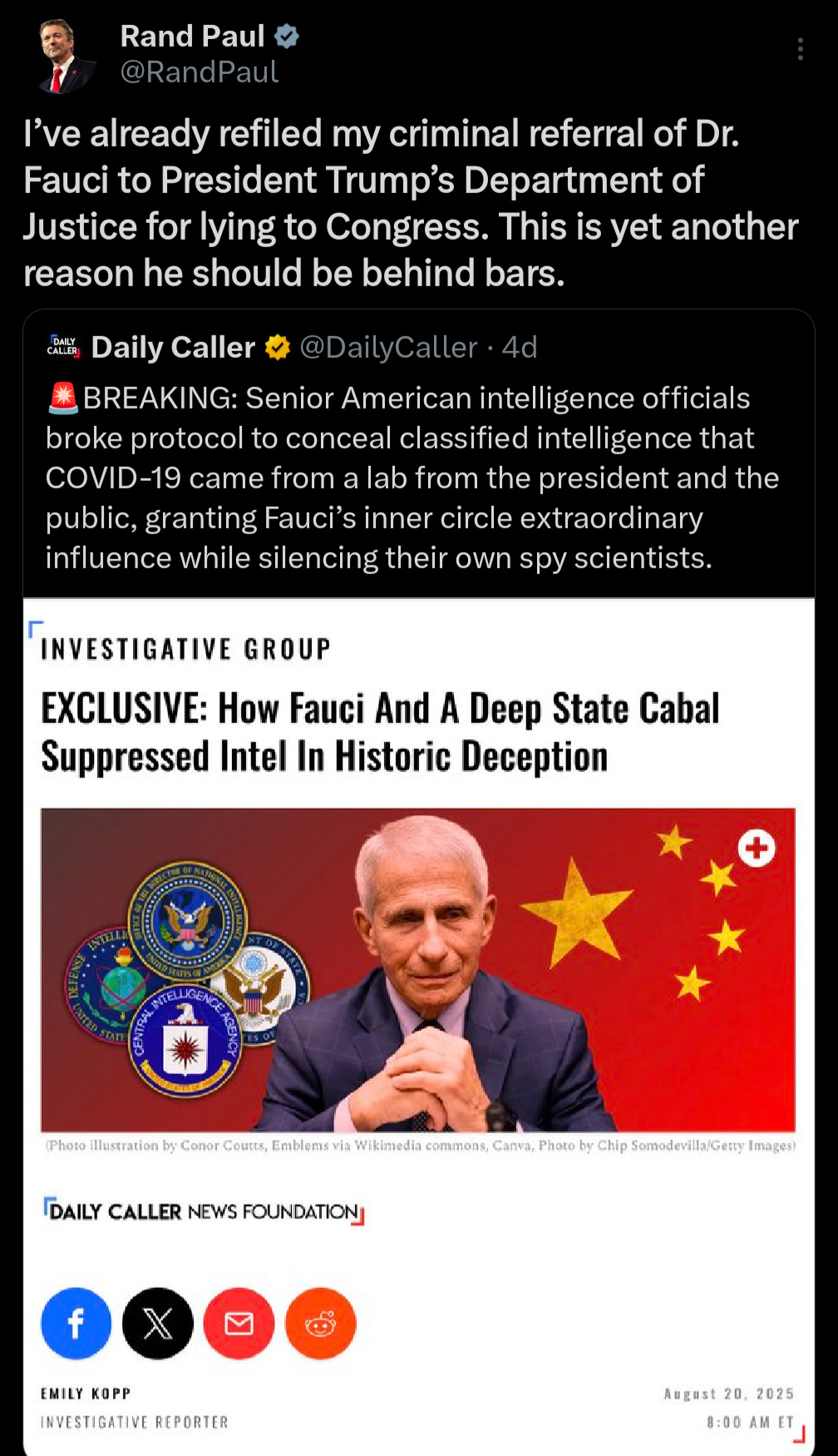 When COVID first arrived, Fauci was given a blank check to implement mandates and “guidelines” that impacted policy decisions.