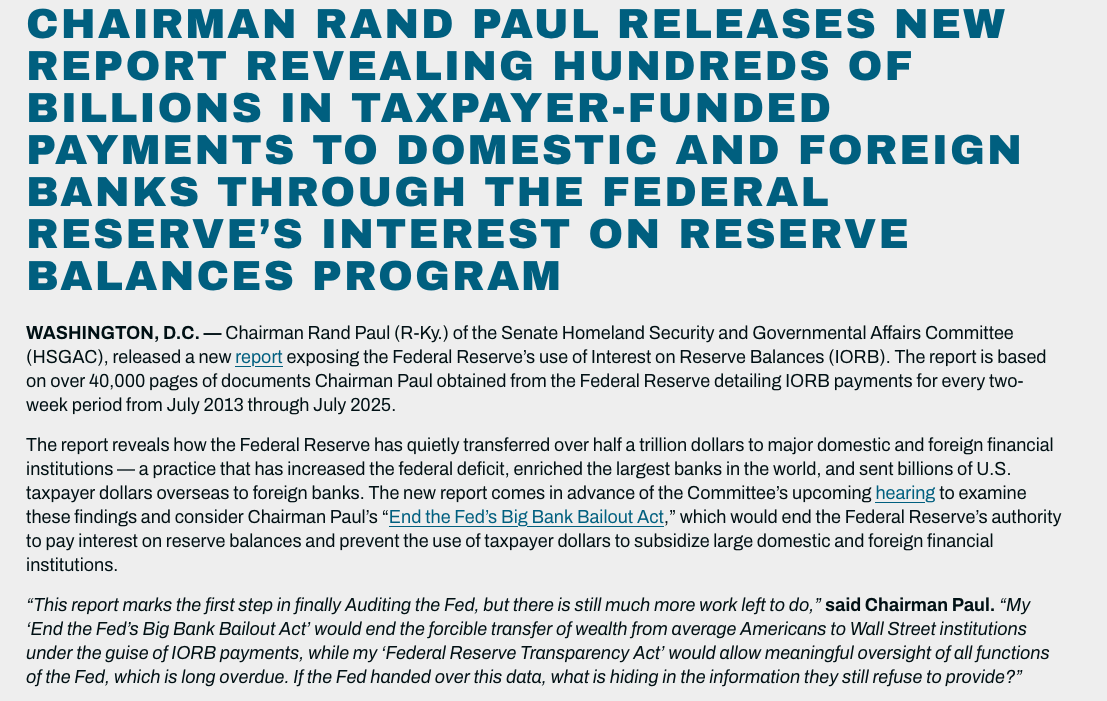 Rand Paul has revealed that the Federal Reserve has been sending money to foreign banks simply so they can hold U.S. dollars in their reserves.
