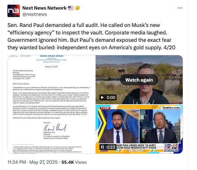 In a 2025 interview, Rand Paul discussed how we should perform an audit of the gold at Fort Knox.