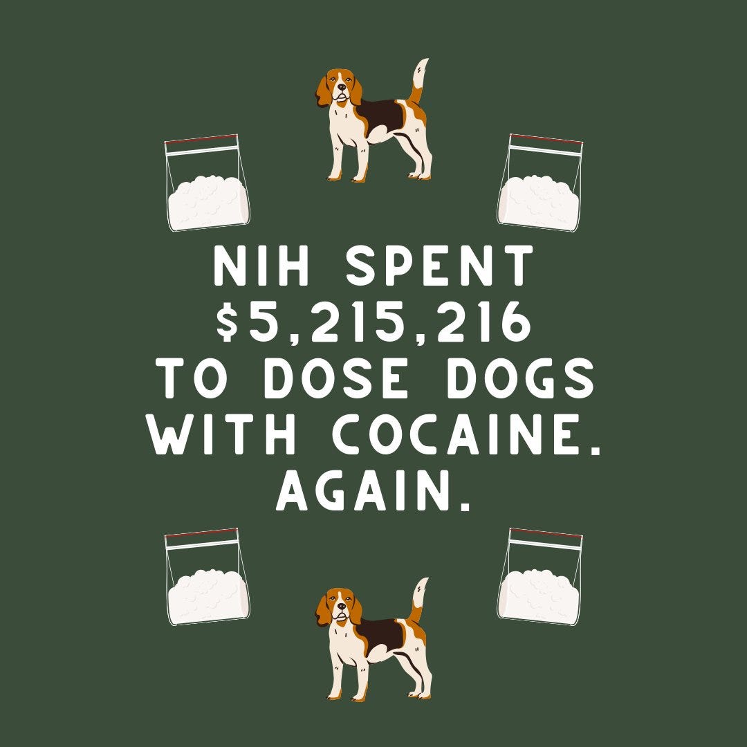 “$5 million to dose dogs with cocaine.”