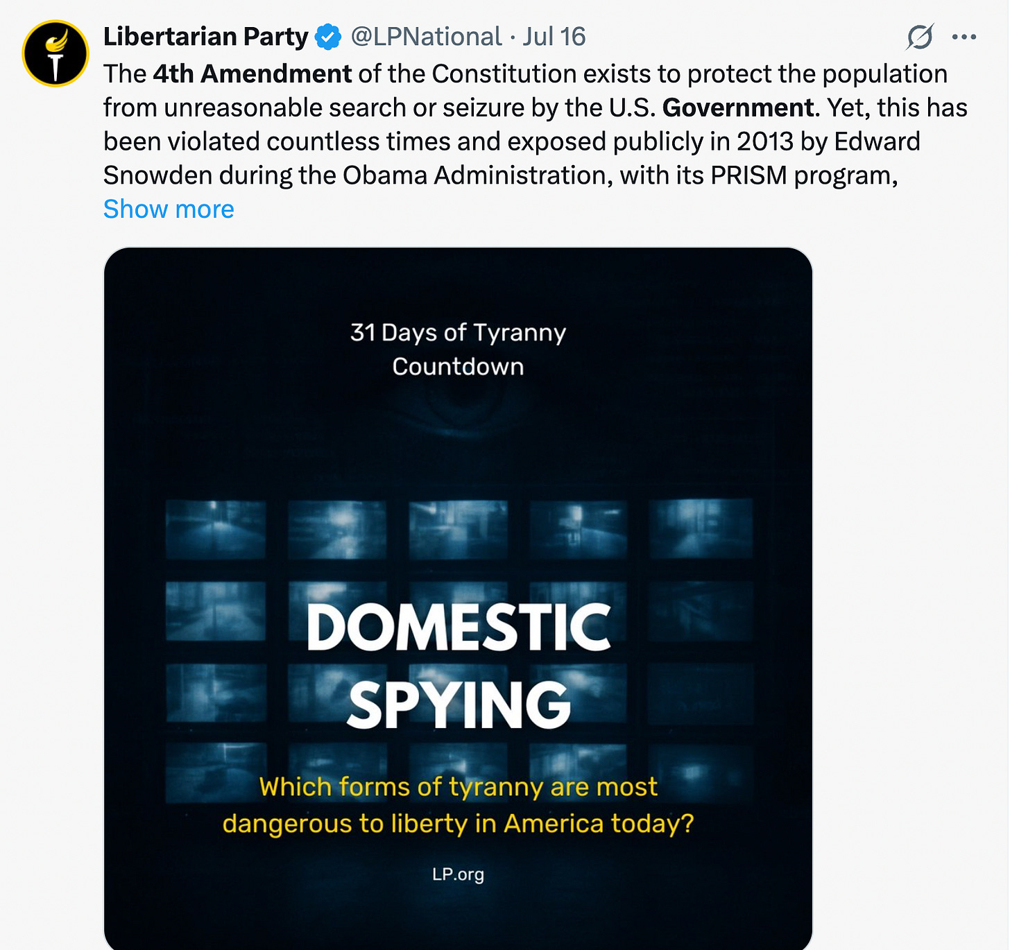 Privacy is not just a legal issue. It’s a moral one. Americans deserve trust. They deserve respect. The government works for us, not the other way around. When the government spies on its own citizens, we’re inches away from becoming an Orwellian dystopia, and we’re already 80% there. This is not a free society. It’s a surveillance state.