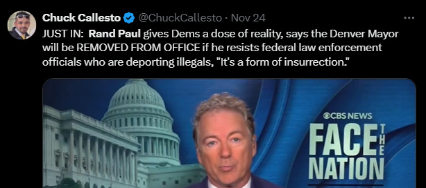 “I would say that the mayor of Denver, if he’s going to resist federal law — which, there’s a long-standing history of the supremacy of federal law — he’s going to resist that, it will go all the way to the Supreme Court. And I would suspect that he would be removed from office.” – Rand Paul on CBS Face the Nation
