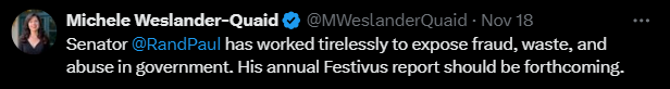 Dr “No” again voted with the democrats on Trumps tariffs I see. Right in the middle of negotiations with China on trade. That’s not going to help Americans in the long run. But politicians can’t think past the next election. It’s why nothing ever gets fixed.