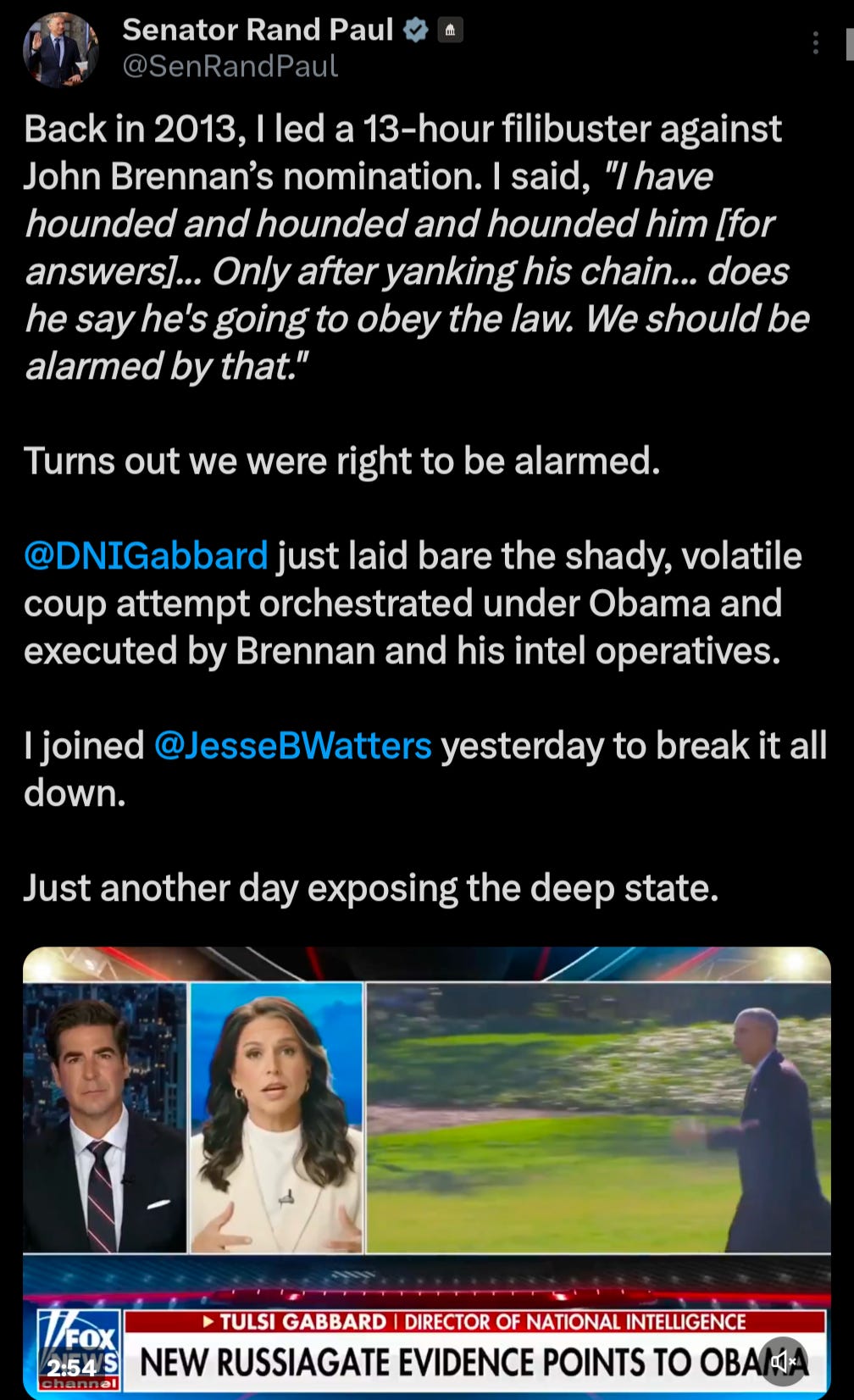 DNI Gabbard just laid bare the shady, volatile coup attempt orchestrated under Obama and executed by Brennan and his intel operatives.